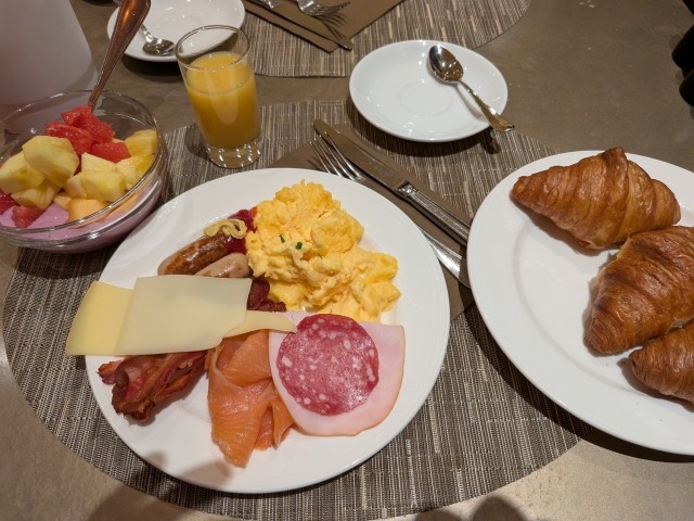 バイキングだけど、食べているものは毎朝同じ。クロワッサンに、卵、サーモン、ハム、ソーセージ、ヨーグルトなど。