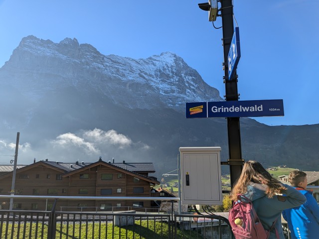 駅からアイガー北壁が見える。3967m。ここの絶壁は難所。でも、思ったほど標高高くないな。