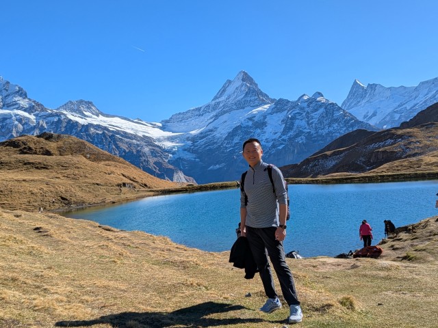 First駅から湖まで1時間くらいだったと思う。暖かくて、楽なハイキングだった。後ろは、シュレックホルン。標高4078mのベルンアルプスの山。