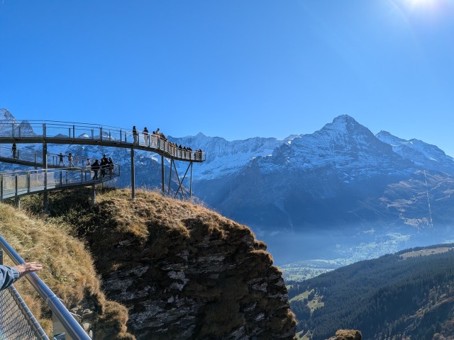 First駅には空中散歩の橋がかかっていて、そこからアイガー北壁がよく見えた。